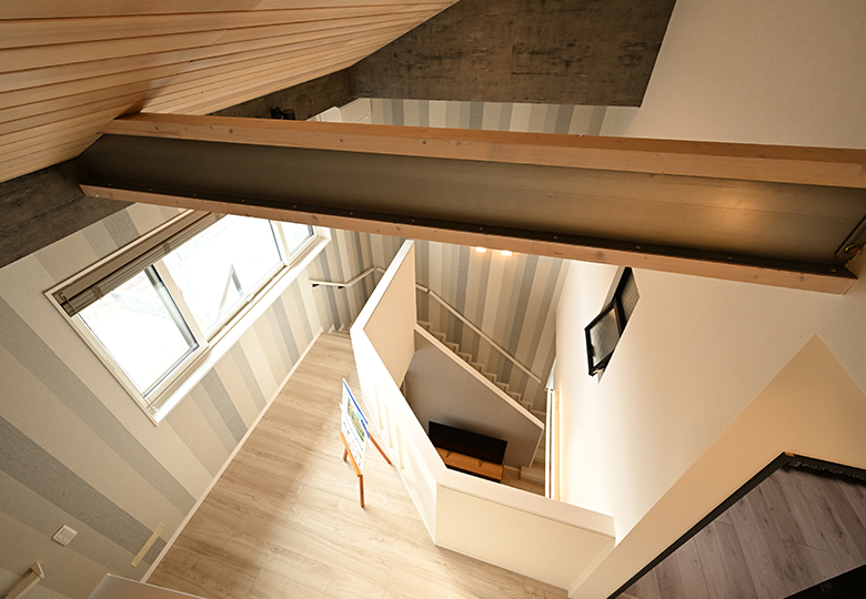ハイブリッド木造「テックワン」は、木材を金具で接合する工法です。木を削る量が少なく耐力が高まり、寸法精度も向上。地震や経年変化に強く、断熱材やパネルも美しく納まる、丈夫で長持ちする木造住宅を実現します。