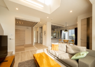 「エアコン1台で冷暖房の家」は、快適で解放感のあるリビング吹抜を実現します。