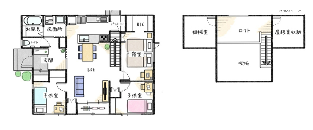 1.5階のロフト付きで開放感のあるリビングを実現します。